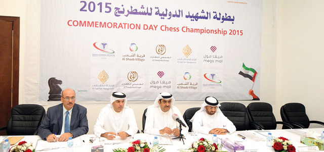 تنطلق في الرابعة من مساء اليوم منافسات بطولة الشهيد الدولية للشطرنج 2015 المقامة في نادي الشارقة الثقافي للشطرنج، بمشاركة 16 فريقاً من جميع الأندية الشطرنجية وأندية الجاليات المقيمة بالدولة، إذ تضم الفرق عدداً من الأساتذة الدوليين الكبار، وعدداً آخر من اللاعبين الدوليين من الإمارات ولبنان ومصر واليمن والأردن وسورية وأوكرانيا وفلسطين، وتستمر فعاليات البطولة ثلاثة أيام، ضمن احتفالات الدولة بيوم الشهيد، الذي يتزامن مع اليوم الوطني الـ44 للدولة ومع احتفالات إزاحة الستار عن النصب التذكاري ليوم الشهيد بالشارقة.