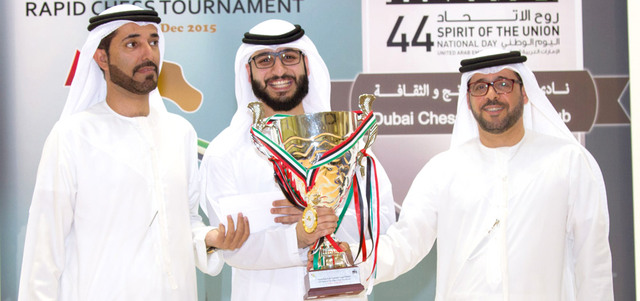 توّج نجم الشطرنج، سالم عبدالرحمن بلقب بطولة اليوم الوطني للشطرنج السريع لعام 2015، متفوقاً على 122 لاعباً ولاعبة شاركوا في البطولة. وقام نائب نادي دبي للشطرنج والثقافة الأمين العام للاتحاد العربي أحمد خليفة آل ثاني، بحضور جمال العبدولي الأمين العام للنادي، بتتويج سالم عبدالرحمن بعد حصوله على المركز الأول وسط مشاركة كبيرة.