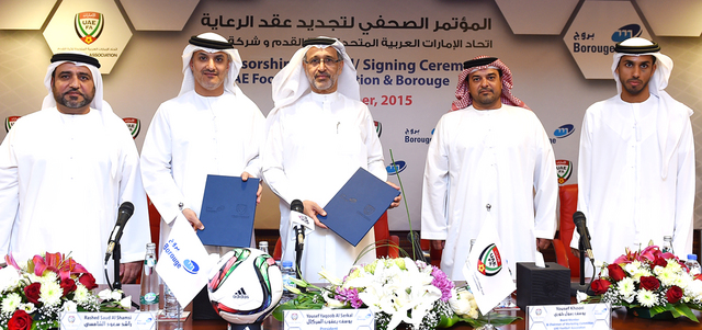 جدّد اتحاد كرة القدم، شراكته مع شركة بروج لمدة ثلاث سنوات أخرى حتى عام 2018، وقال رئيس اتحاد كرة القدم، يوسف السركال، خلال مؤتمر صحافي عقد في مقره في دبي، أمس، إن شراكة اتحاد الكرة مع بروج وفر دعماً مالياً ومعنوياً كبيراً للمنتخبات الوطنية، مؤكداً حرص اتحاد الكرة على تعزيز هذا النوع من الشراكات بما يمهد الطريق لإحداث نقلة كبيرة، وصولاً الى تحقيق المزيد من الإنجازات لكرة الإمارات.