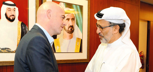 بدوره قال انفانتينو: البنية التحتية للاتحاد مكتملة، ومقره يضم العديد من ملاعب كرة القدم، والصالات، والشاطئية، وصالات تدريبات مجهزة بكل ما يحتاجه اللاعب، وهذا يدل على الاهتمام الذي تجده الرياضة في الإمارات، مؤكداً على مد جسور التعاون بين الاتحاد الأوروبي واتحاد الكرة الفترة المقبلة.