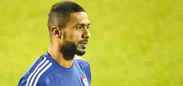 مدافع النصر أحمد إبراهيم الياسي خلال تدريبات المنتخب الوطني أمس. تصوير: باتريك كاستيلو
