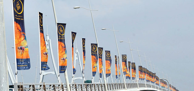 أعلام الطواف على الجسور وفي الشوارع الرئيسة. من المصدر