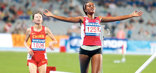 لاعبة المنتخب علياء محمد سعيد خلال مشاركتها في دورة الألعاب الآسيوية بكوريا. من المصدر