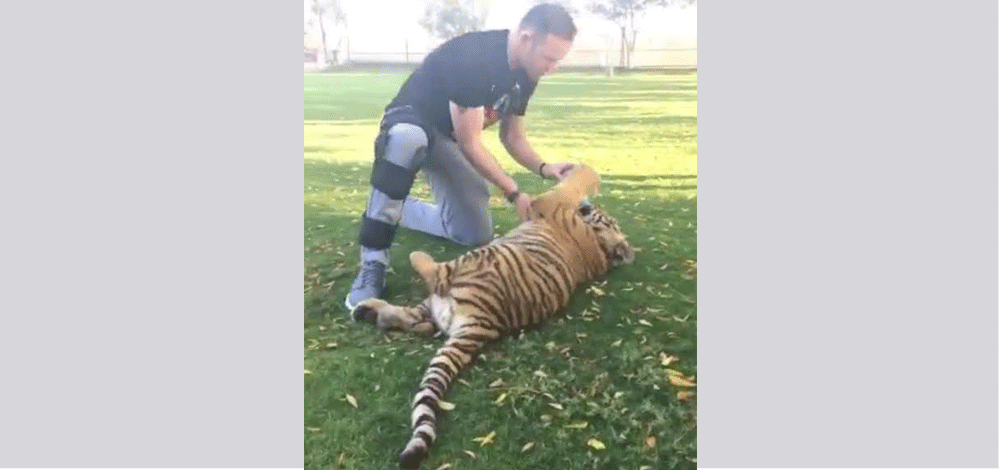 بالفيديو...روني يلعب مع نمر في دبي.. ويتعلم «السلام عليكم»