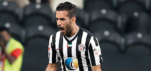علي مبخوت سجل هدفين في مرمى النصر أول من أمس بدوري الخليج العربي. تصوير: إريك أرازاس