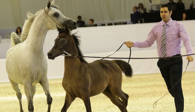 بالصور.. أروع المهور والمهرات يستعرضون جمالهم بصحبة أمهاتهم في بطولة دبي الدولية للجواد العربي