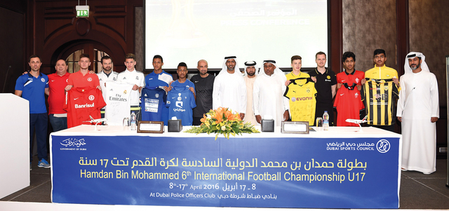 أعلنت اللجنة المنظمة لبطولة حمدان بن محمد الدولية لكرة القدم تحت 17 سنة، التي ينظمها مجلس دبي الرياضي، انطلاقة النسخة السادسة من البطولة اليوم بمشاركة ثمانية فرق تم تقسيمها إلى مجموعتين، تضم الأولى دورتموند الألماني والهلال السعودي والوصل وحتا من دبي، وفي المجموعة الثانية ريال مدريد الإسباني وانترناسيونال البرازيلي والنصر والأهلي الإماراتيين.