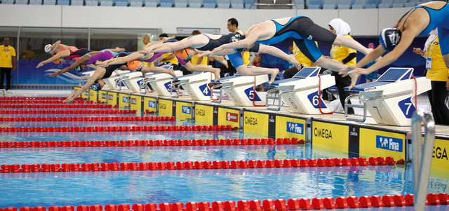 من منافسات بطولة دبي الدولية للسباحة. من المصدر