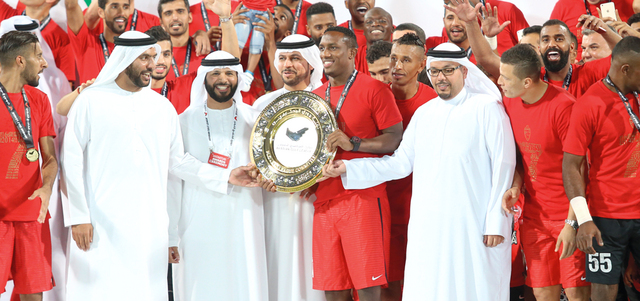 بن غليطة سلم الأهلي درع دوري الخليج العربي. تصوير: أسامة أبوغانم