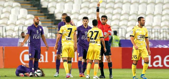 فريق الوصل اعترض كثيراً على قرارات يعقوب الحمادي في مباراة العين. تصوير: نجيب محمد