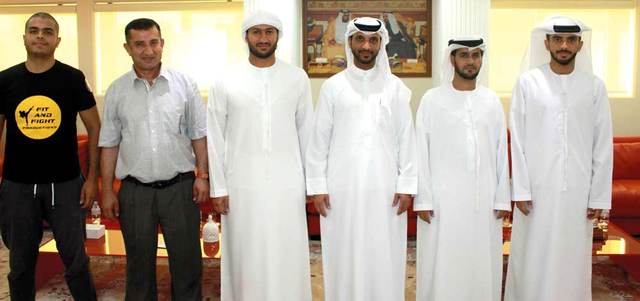 بن جرش مع أعضاء اللجنة الثقافية بنادي الشارقة. من المصدر