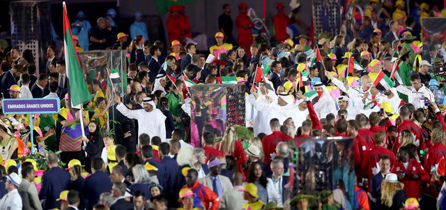 وكان آخر من رفع العلم الشيخ سعيد بن مكتوم بن راشد آل مكتوم، بطل الرماية في الدورة الماضية بلندن، وسبقته سمو الشيخة ميثاء بنت محمد بن راشد آل مكتوم في بكين.