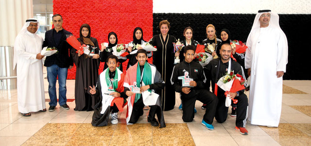 حظيت بعثة منتخب الإمارات للكاراتيه باستقبال حافل، لدى عودتها، أول من أمس، إلى مطار دبي، قادمة من العاصمة الأردنية عمان، مكللة بثماني ميداليات ملونة (ذهبيتان ـ ثلاث فضيات ـ ثلاث برونزيات)، حققها لاعبو ولاعبات المنتخب، في مشاركتهم ببطولتي العرب وغرب آسيا اللتين أقيمتا على التوالي خلال الفترة من الرابع وحتى السابع من أغسطس الجاري، بمشاركة نخبة من المنتخبات العربية وغرب آسيا.
