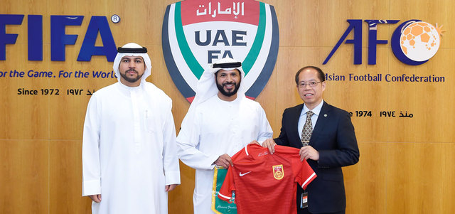 قام نائب رئيس الاتحاد الصيني لكرة القدم، زهانغ جين، بزيارة مقر اتحاد الكرة في دبي، أمس، وكان في استقباله رئيس مجلس إدارة اتحاد الكرة، مروان بن غليطة، ونائب رئيس الاتحاد سعيد عبيد الطنيجي، ومدير مكتب رئيس الاتحاد، ناصر بن ثعلوب الدرعي.