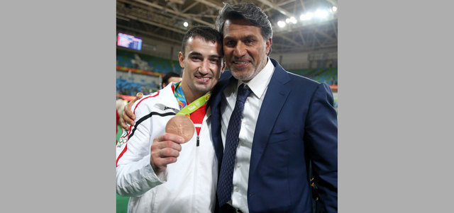 التميمي مع توما سيرجيو خلال الاحتفال ببرونزية الجودو. من المصدر