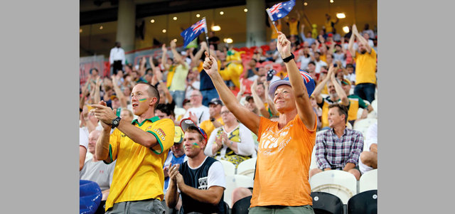 استقبل الجمهور الأسترالي، الـ«تيفو»، الذي أظهره أنصار الأبيض قبل دقائق من انطلاقة المباراة بـ«تصفيق حار»، كما رفع عدد منهم مجسماً لكأس العالم، وللكانغارو، وهو شعار المنتخب الأسترالي، الى جانب بعض اللافتات الخاصة بنجوم الفريق.