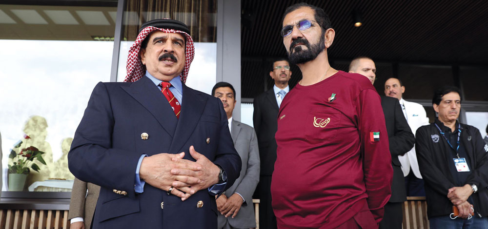 وتبادل صاحب السمو نائب رئيس الدولة رئيس مجلس الوزراء حاكم دبي، مع ملك البحرين، أطراف الحديث حول فعاليات المونديال العالمي للقدرة، الذي يشهد مشاركة نخبة من فرسان العالم، بما فيهم فرسان الإمارات والبحرين، كما تم التطرق إلى أهمية مواصلة دعم هذه الرياضة العريقة.