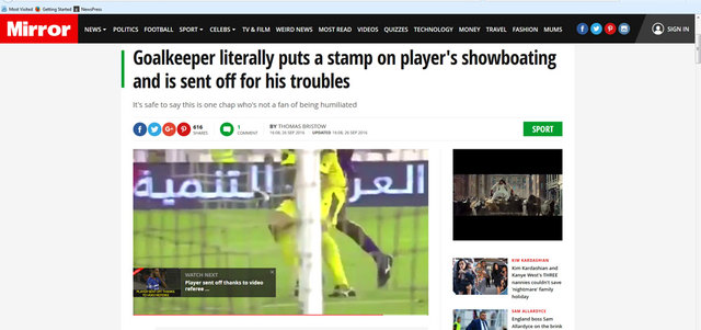 وتابعت: «من قبل حاول لاعب فريق برشلونة الإسباني نيمار القيام بمراوغة لاعبي أتلتيكو بلباو بطريقة مهارية كبيرة، لكنه في الواقع يجب أن يعتبر نفسه محظوظاً لأنه حينها واجه لاعبي الأتلتيك وليس حارس نادي الإمارات، علي سعيد صقر، الذي قام بردة فعل غاضبة تجاه لاعب العين اسبريلا».