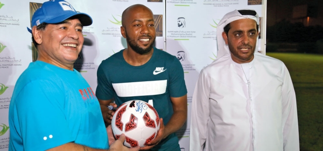 وقال مارادونا في مؤتمر صحافي أمس، في نادي بلدية دبي، بحضور رئيس مجلس أمناء جائزة محمد بن راشد آل مكتوم للسلام العالمي، د.حمد الشيباني، إنه يعرف مطر جيداً، وكان يستمتع بطريقة لعبه، مشيراً إلى أنه يتمتع بالذكاء داخل الملعب، ومن اللاعبين الموهوبين الذين جذبوا انتباهه من خلال متابعته للدوري. وأضاف: «عندما علمت بإقامة مباراة السلام في روما، طلبت توجيه الدعوة إلى لاعب إماراتي، واخترت مطر، لأنني أعلم امكاناته ومهاراته الكبيرة، وأهمية وجودة وسط كوكبة النجوم المشاركين». وتابع «سعيد للغاية بوجود لاعب إماراتي لأول مرة في مباراة من أجل السلام، وذلك للدور الرائع الذي تقوم به الإمارات، إذ تحدثت مع البابا فرانسيس عن ضرورة وجود نجم إماراتي في هذا الحدث، نظراً لعلاقتي المتميزة مع البابا ولكوني أعيش في دبي، وأعتبر دولة الإمارات واحدة من دول السلام العالمي، حيث إنها ترعى على أرضها جنسيات العالم المختلفة في سلم وأمان كبيرين، وفي الوقت نفسه هناك دور بارز ومهم للدولة في نشر السلام العالمي». وأشار مارادونا إلى أن المباراة ستشهد مشاركة مجموعة كبيرة من نجوم «الساحرة المستديرة» أبرزهم رونالدينيو وفابيو كابيلو وزامبروتا وكلاوديو لوبيز ورافال ماركوس وهيرنان كريسبو وبلانكو وروبرت بيرس وإيريك أبيدال وكافو وروبرتو كارلوس وفرانشيسكو توتي.