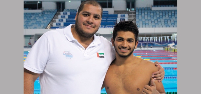 الزناتي وسبّاح المنتخب عبدالله حاتم. الإمارات اليوم