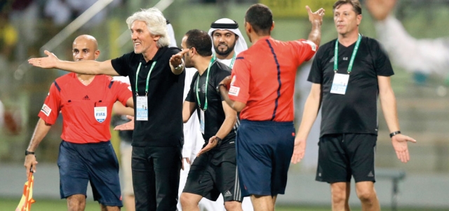 مدرب النصر لحظة إلغاء ضربة الجزاء. تصوير: أسامة أبوغانم