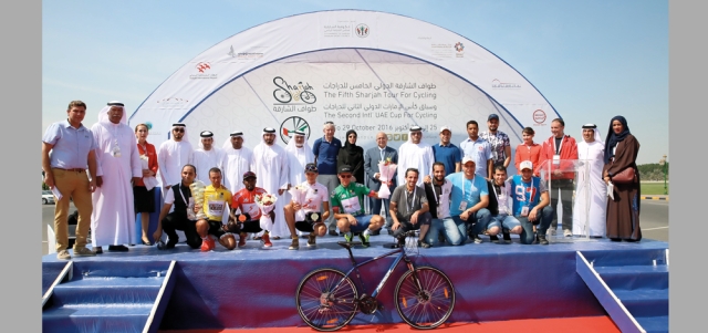 من تتويج الفائزين في طواف الشارقة. من المصدر