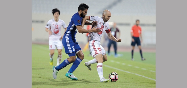 وأسفر الضغط المتواصل للعميد على مرمى حارس الشارقة محمد يوسف عن تسجيله الهدف الأول في الدقيقة التاسعة من هجمة منظمة من تسديدة رأسية للمحترف العراقي مهند كرار، مستفيداً من تمريرة عرضية لكيبمو.