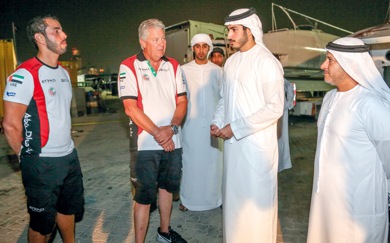وحرص سموه على زيارة خيمة فريق أبوظبي والتقى بمتسابقي الفريق، حيث شد سموه من أزر المتسابقين، مؤكداً أن لديهم القدرة على تحقيق الفوز والتميز في المنافسة. واطلع سموه على نظام إدارة الزوارق لدى الكادر الإداري والفني في الفريق، بالإضافة إلى الاطلاع على التفاصيل الفنية والتقنيات الحديثة التي يستعين بها الفريق من أجل المنافسة.