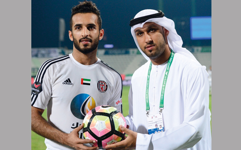 علي مبخوت يحمل كرة مباراة الجزيرة والشباب. من المصدر