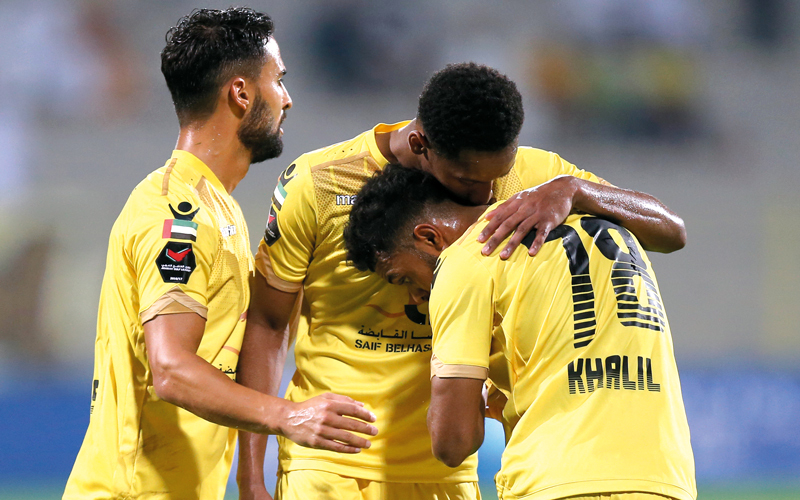 فرحة كبيرة للاعبي الوصل بعد اكتساح شباك دبا. تصوير: أسامة أبوغانم