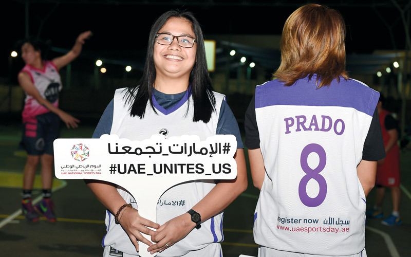 نظمت الجالية الفلبينية، أول من أمس، فعالية رياضية بمركز الصفا الرياضي في دبي، لترويج اليوم الرياضي الوطني، عن طريق ارتداء ملابس رياضية مطبوع عليها شعار الحدث، في افتتاح بطولة كرة السلة التي تنظمها الجالية في دبي، وتختتم الجمعة المقبلة. وكانت اللجنة الأولمبية الوطنية قد كثفت استعدادها لليوم الرياضي الوطني، الذي ينطلق في 16 من فبراير المقبل، بمشاركة مجتمعية واسعة، تضم كل الهيئات والمؤسسات والقطاعات من المقيمين على أرض الدولة، إذ تتواصل مع مختلف الفئات، بما في ذلك الجاليات المقيمة، التي تمثل رافداً مهماً لتلك الفعالية السامية، التي تدعو الجميع لتقديم نموذج في التلاحم والترابط بشعار «الإمارات تجمعنا»، الذي تم تدشينه انطلاقاً من التناغم والتجانس الملموس الذي يعيشه الجميع في إمارات الخير والسلام.