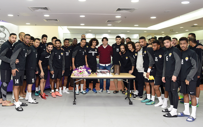 زلاتكو يتوسط لاعبي العين في احتفال وداعه. من المصدر