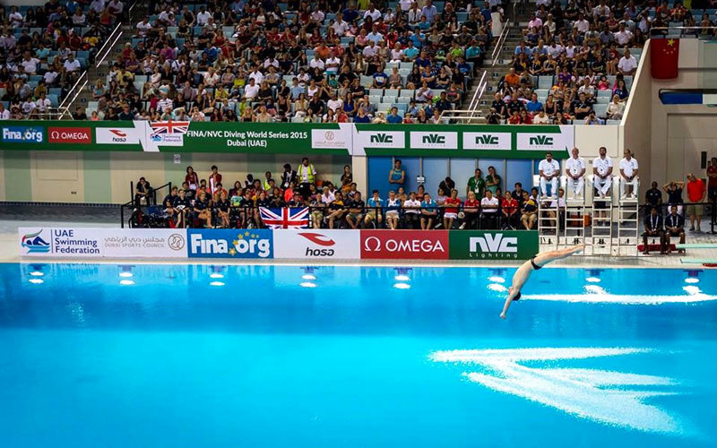 وكان مجمع حمدان الرياضي في دبي قد بدأ في استضافة جولات كأس العالم للسباحة والغطس عام 2010 باستضافة إحدى الجولات الأربع الأكبر في العالم التي تقام في دبي، والصين، وكازان، ولندن.
