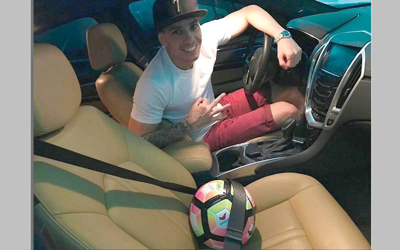 احتفل لاعب الوصل، البرازيلي كايو كانيدو، بتسجيله أول «هاتريك» في مسيرته مع «الإمبراطور» في مرمى بني ياس، في الجولة الماضية، بطريقة طريفة، عندما نشر صورة الكرة التي سجل بها الأهداف الثلاثة في مرمى «السماوي» على حسابه في «إنستغرام»، إذ وضع الكرة إلى جواره في السيارة وربط حزام الأمان حولها.