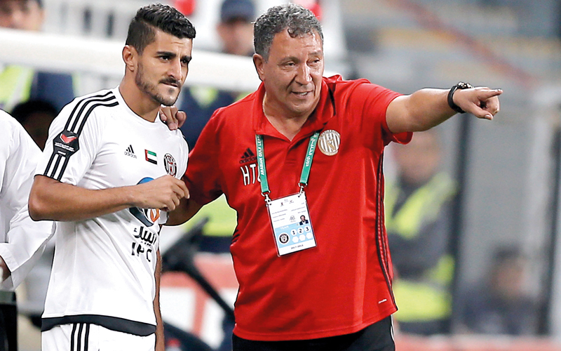 مدرب الجزيرة تين كات يوجّه أيلتون خلال مباراة العين. تصوير: إريك أرازاس