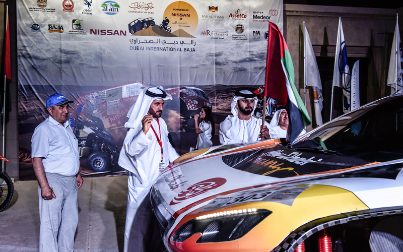 منصور بن محمد يعطي شارة انطلاق رالي دبي الدولي