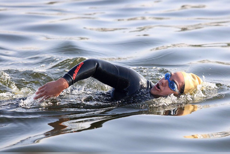 بالصور.. مريم تسجل رقماً قياسياً كأول سبّاحة تعبر خور دبي و"دبي المائية"
