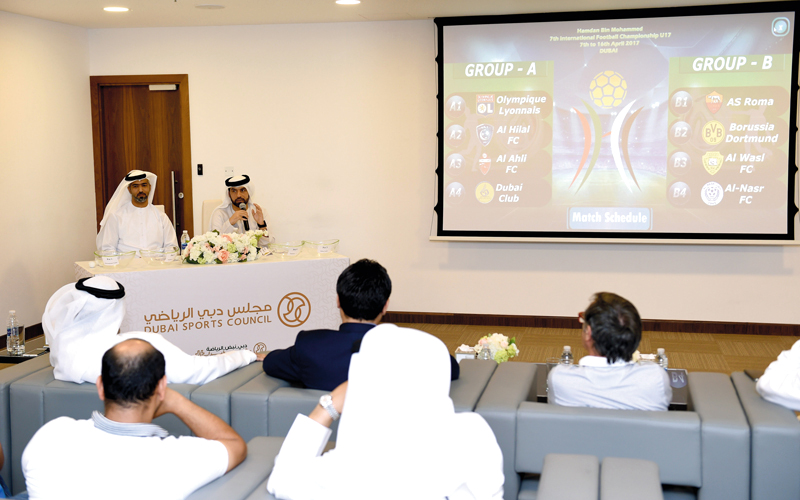 أجرت اللجنة المنظمة لبطولة حمدان بن محمد الدولية لكرة القدم تحت 17 سنة، التي ينظمها مجلس دبي الرياضي، مراسم القرعة الرسمية للنسخة السابعة من البطولة، التي تجري مبارياتها من السابع إلى 16 أبريل المقبل، بملعب نادي ضباط شرطة دبي. وأوقعت القرعة التي تم بموجبها تقسيم الفرق إلى مجموعتين، أولمبيك ليون والهلال والأهلي ودبي في المجموعة الأولى، فيما ضمت المجموعة الثانية فريق روما، بروسيا دورتموند، الوصل والنصر، وتفتتح البطولة في اليوم الأول بمواجهتين، حيث يلتقي في المباراة الأولى فريق أولمبيك ليون مع فريق دبي، وفي المباراة الثانية، يلتقي فريق الهلال السعودي مع فريق الأهلي.