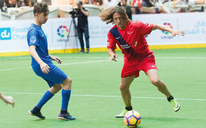 شارك نجما برشلونة وريال مدريد الإسبانيان، كارلوس بويول وميشيل سالغادو، في مباراة استعراضية على هامش فعاليات الموسم الثاني لنهائيات «منصة أبطال دو للمدارس والفرجان»، التي أقيمت، أول من أمس، في «دبي مول»، بحضور جماهيري غفير، استعاد خلالها اللاعبان أجواء الكلاسيكو الذي جمعهما قبل الاعتزال، وانتهت المواجهة بفوز فريق بويول بهدفين نظيفين.