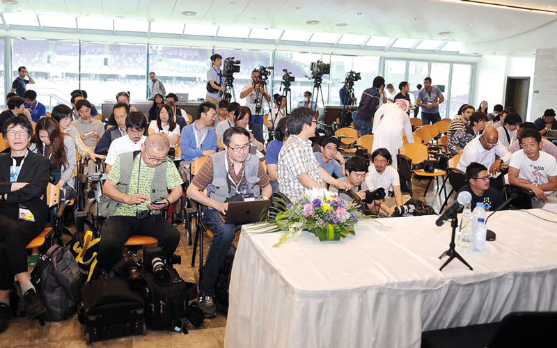 في المقابل، شهد المؤتمران الصحافيان لمدرب الإمارات، مهدي علي، وكذلك مدرب المنتخب الياباني البوسني، وحيد خليلوزيتش، حضوراً مكثفاً من الإعلاميين اليابانيين، قدر بأكثر من 100 إعلامي يمثلون كل وسائل الاعلام المختلفة في اليابان. ويذكر أن المنتخب الياباني يحظى دائماً بمرافقة إعلامية كبيرة جداً، حصل ذلك في مونديال البرازيل، وفي بطولات مختلفة.