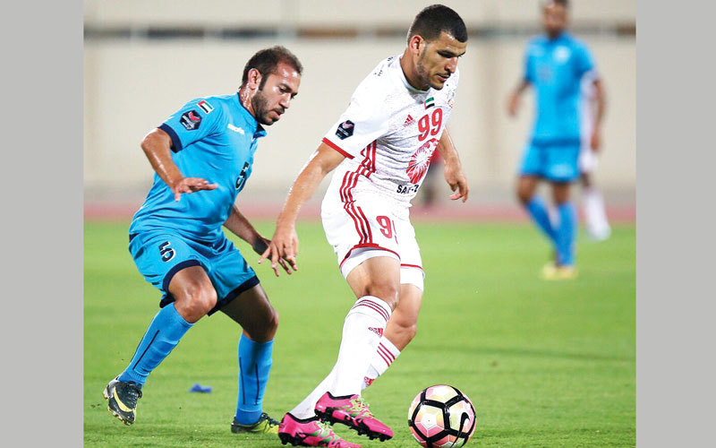 لاعب وسط الشارقة جمال معروف خلال لقاء فريقه أمام حتا. من المصدر