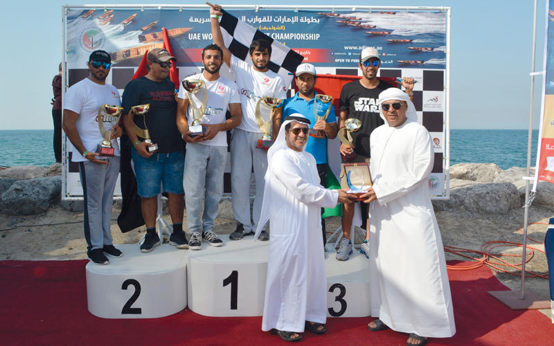 وتوج الفائزين كلٌّ من مدير عام نادي أبوظبي الدولي للرياضات البحرية سالم الرميثي، ومدير نادي الغربية حمدان المزروعي، ومشرف عام السباق ناصر الظاهري.