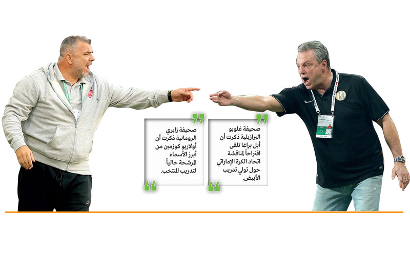 في المقابل، أكدت صحيفة «زايري» الرومانية، أن مدرب النادي الأهلي، الروماني أولاريو كوزمين، من أبرز الأسماء المرشحة حالياً لتدريب منتخب الإمارات، موضحة: «كوزمين يحظى بدعم كبير، ويعد من الأسماء المفضلة لتولي تدريب المنتخب الإماراتي، خلفاً للمدرب مهدي علي، الذي استقال أخيراً من تدريب المنتخب، بعد الخسارة من أستراليا في تصفيات كأس العالم».