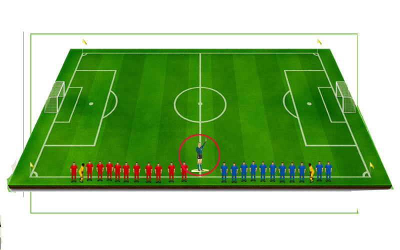 يحقّ للحكم استخدام البطاقة الحمراء قبل انطلاق المباراة، لكنّ تأثير قرار الطرد يكون وفقاً لثلاث حالات، الأولى إذا كان الطرد قبل تسليم قائمة اللاعبين، فيجب عدم إضافة اسم اللاعب إلى القائمة، أما إذا كان الطرد بعد تسليم قائمة اللاعبين، فيجب أن يتم استبعاد اللاعب تماماً من القائمة، مع إمكانية استبداله بلاعب آخر، والحالة الثالثة إذا كان الطرد بعد ركلة البداية، فلا يمكن استبدال اللاعب في القائمة.
