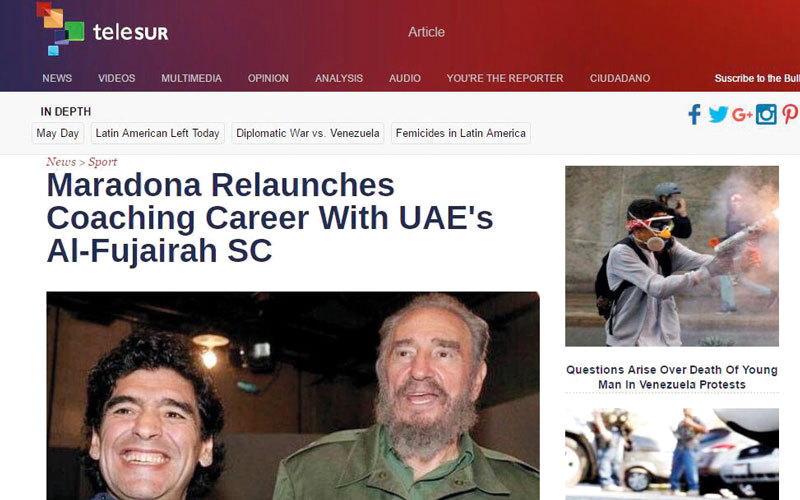 أما شبكة قنوات «تيلي سر» اللاتينية، فقد نشرت صورة لمارادونا مع رئيس كوبا السابق، فيدل كاسترو، وقالت: الأسطورة «مارادونا مدرباً للفجيرة».