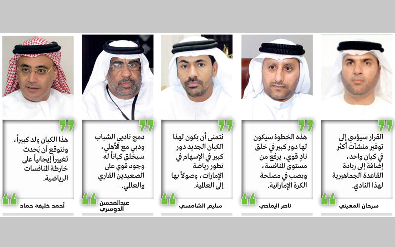 وقال اليماحي: «هذه الخطوة في تقديري سيكون لها دور كبير في خلق ناد قوي، يرفع من مستوى المنافسة في الدوري الإماراتي، ويصب في مصلحة الكرة الإماراتية».