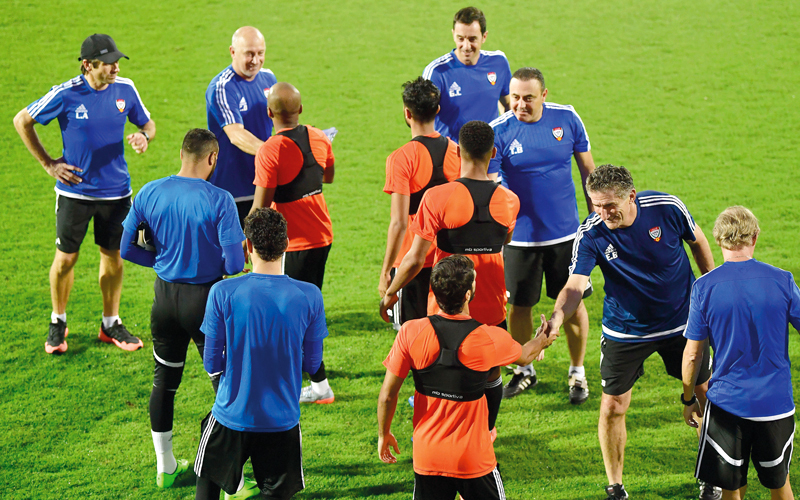 وغاب عن التدريب الأول الذي أجراه المنتخب 11 لاعباً، هم علي مبخوت ومحمد فوزي وخلفان مبارك وفارس جمعة محمد مرزوق، وحمدان الكمالي وخالد باوزير ومحمد العكبري وطارق الخديم، وراشد علي ومحمود خميس، بجانب لاعبي العين والأهلي الـ14 وحارس الجزيرة علي خصيف الذي تم استبعادهم أمس. وشدد مشرف المنتخب على أهمية التهيئة النفسية للاعبين لإشعارهم بأهمية المرحلة المقبلة، وقال: «رغم خسارة المنتخب في الجولتينالماضيتين أمام اليابان وأستراليا، لكنه لم يكن سيئاً».