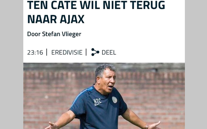 وذكرت صحيفة «إن أو إس» الهولندية أن «أياكس عرض على تين كات تولي تدريب النادي الهولندي، خلفاً للمدرب بيتر بوشر، الذي رحل لتدريب بروسيا دورتموند الألماني».