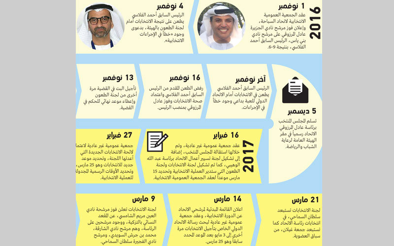 وترصد «الإمارات اليوم» المراحل التي مر بها الاتحاد للوصول إلى المجلس الجديد، وعودة استقراره الإداري.