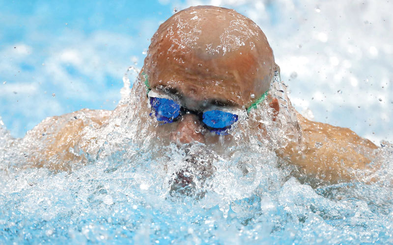 البطل المجري لازلو سيش خلال مشاركته بسباق 200 متر فراشة في بطولة العالم للسباحة المقامة حالياً في بودابست.